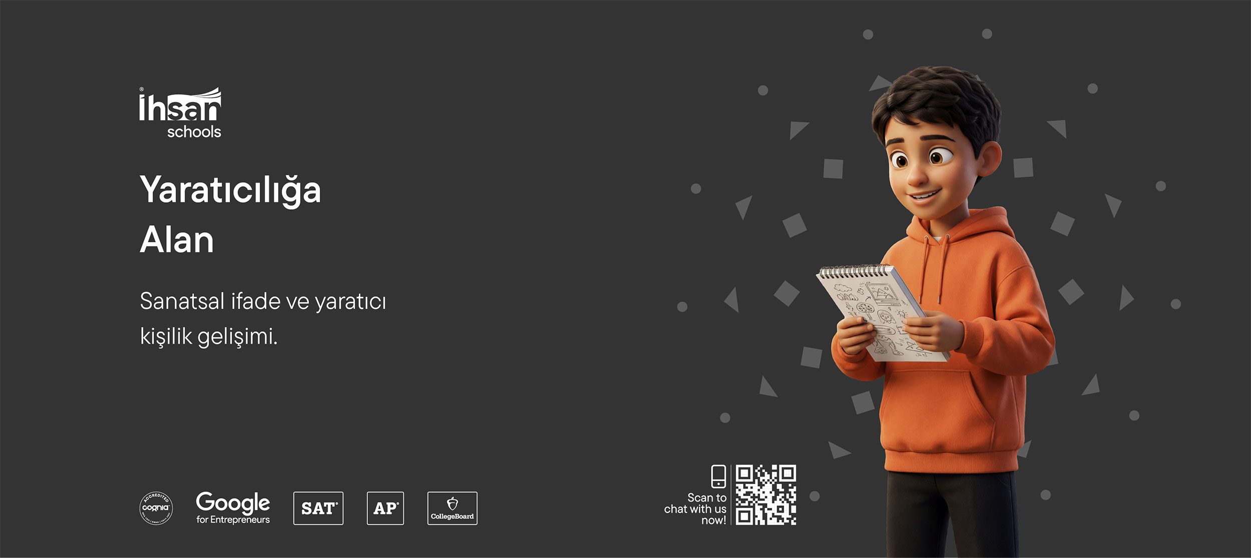 İhsan Anaokulu programı kapsamındaki mottomuz okul sloganımızı destekler: İyi Eğitim Herkesin Hakkıdır; anaokulu öğrencilerimiz için eğitim gelişimine yönelik metodolojimiz ve yaklaşımımız, kişisel gelişimi ve yeni becerilerin keşfedilmesini teşvik etmektedir.